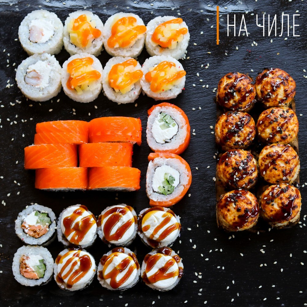 Ролл "Филадельфия", ролл "Тэкка Терияки ", ролл "Голден", ролл "Токио Мясной", (32 шт)