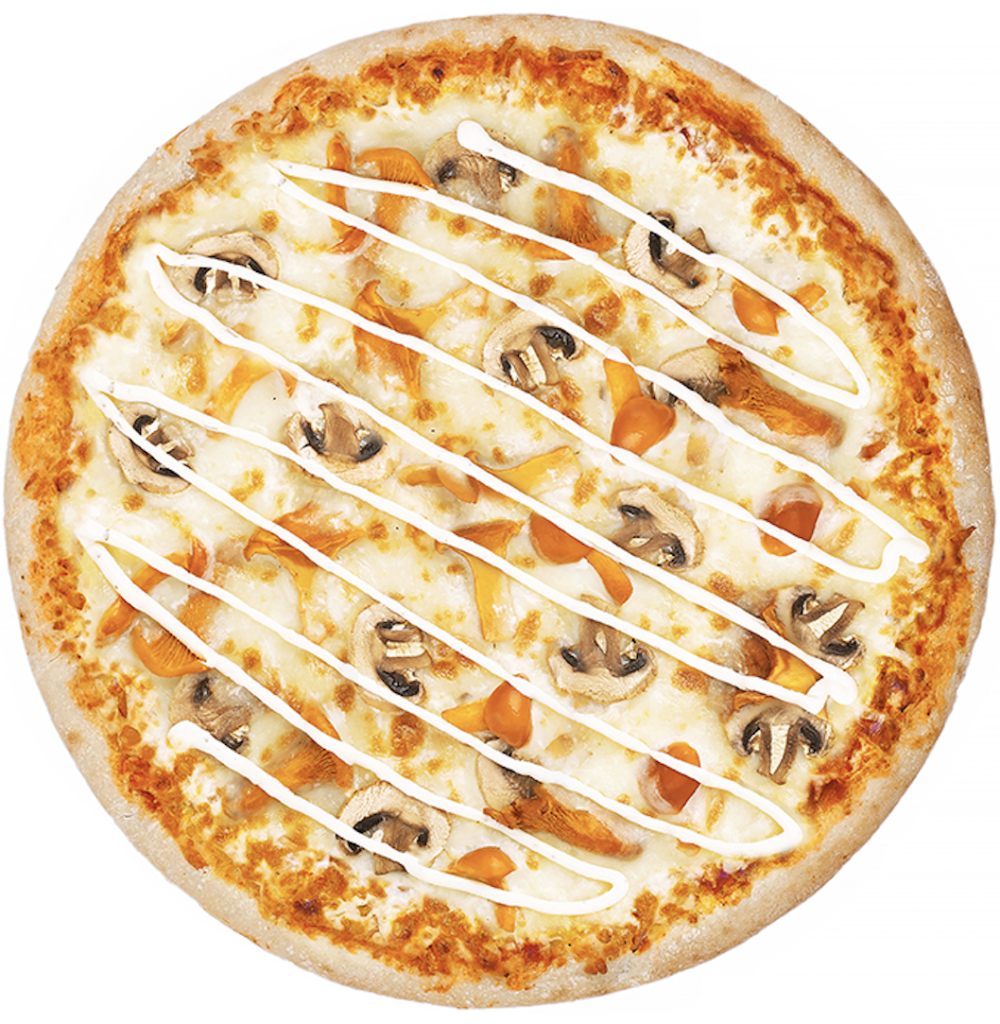 Лисички, опята, шампиньоны, моцарелла, грибной соус, чесночная основа
