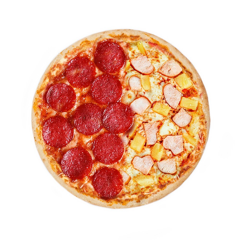 Пепперони, ананасы, куриное филе, сыр «Моцарелла», тесто