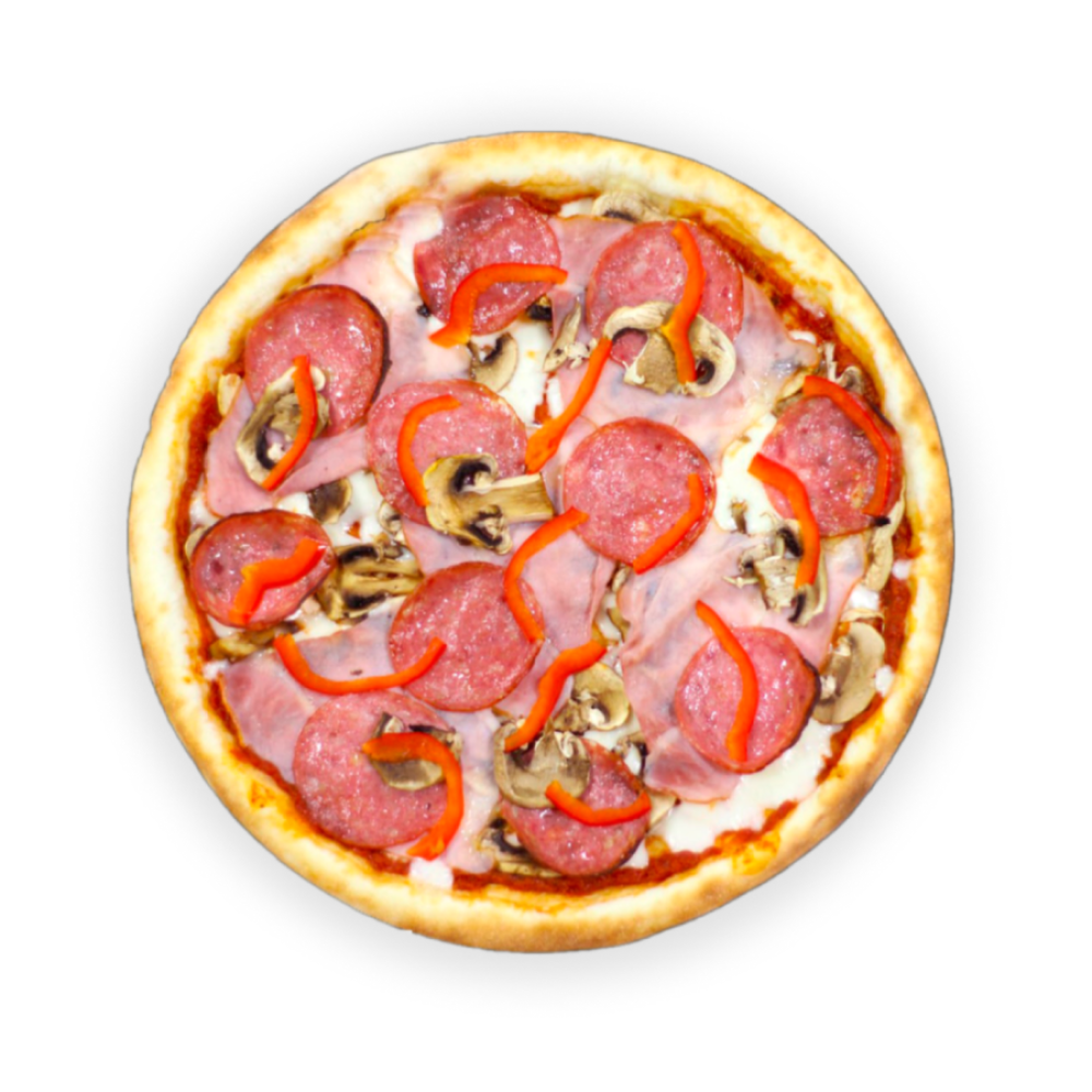 Соус томатный, сыр, грибы, ветчина, салями, перец болгарский