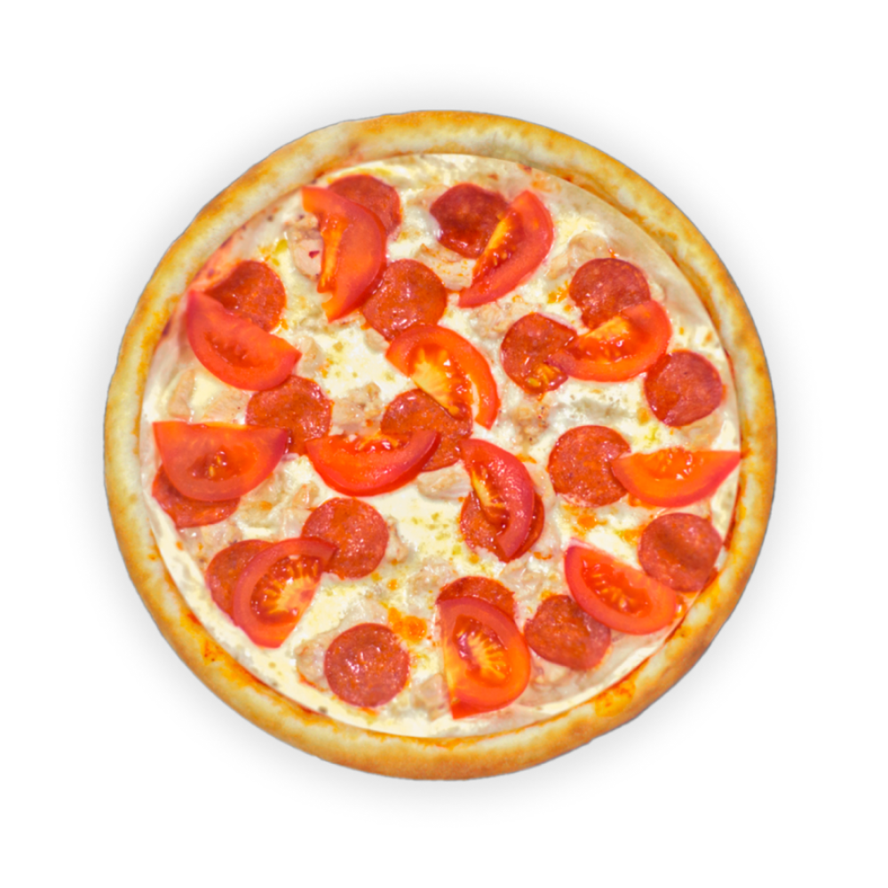 Соус сырный, курица, пепперони, сыр, томат
