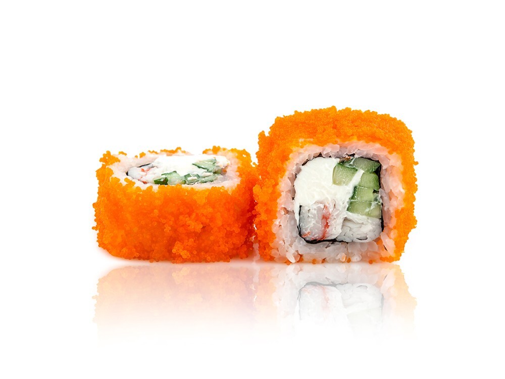 Снежный краб (им.), сыр «Филадельфия», огурец, икра масаго, рис, нори (8 шт)