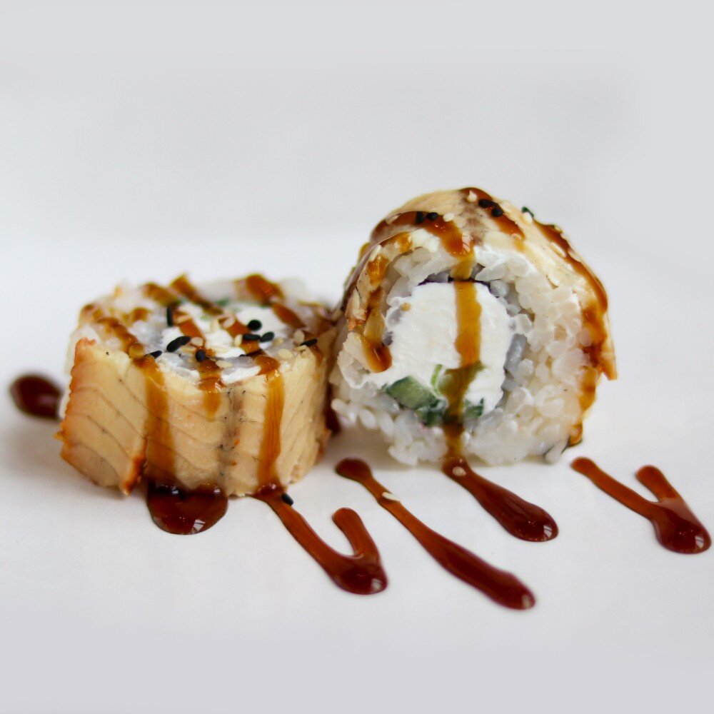 Угорь, сыр «Филадельфия», огурец, соус «Унаги», кунжут, рис, нори (8 шт)