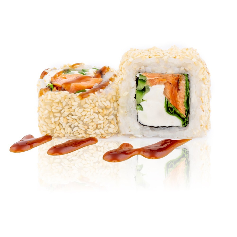 Лосось терияки, огурец, салат, сыр Cremette, кунжут, соус Терияки, рис, нори (8шт)