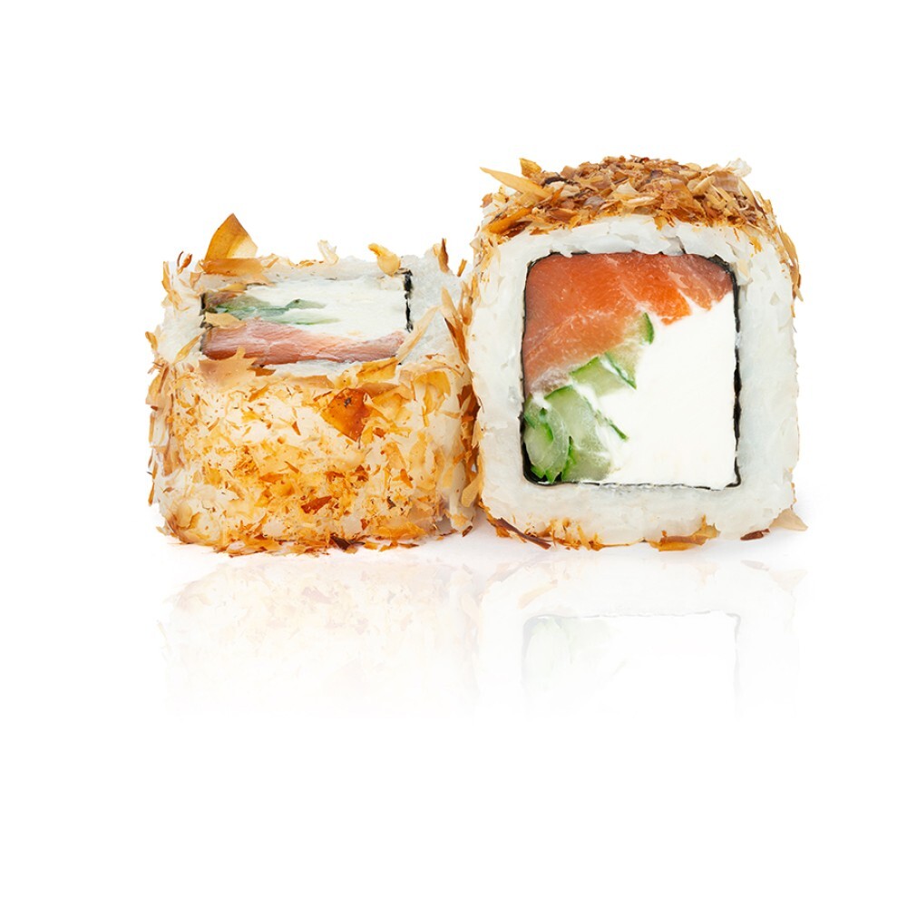 Лосось, сыр Cremette, огурец, стружка тунца, рис, нори