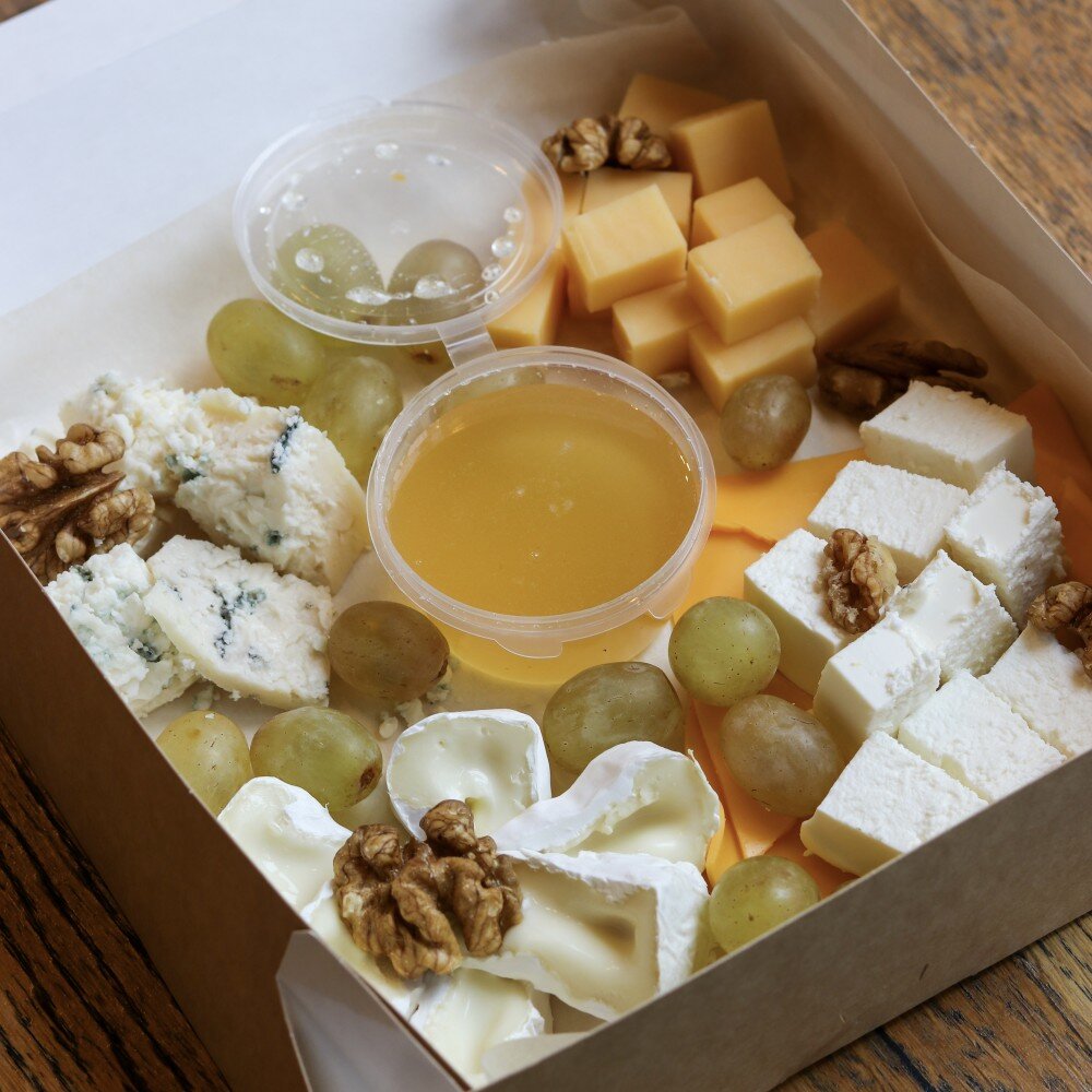 Сыр Дор Блю, Чеддер, Фета, Пармезан, Камамбер подаётся с медом ,грецкими орехами и виноградом