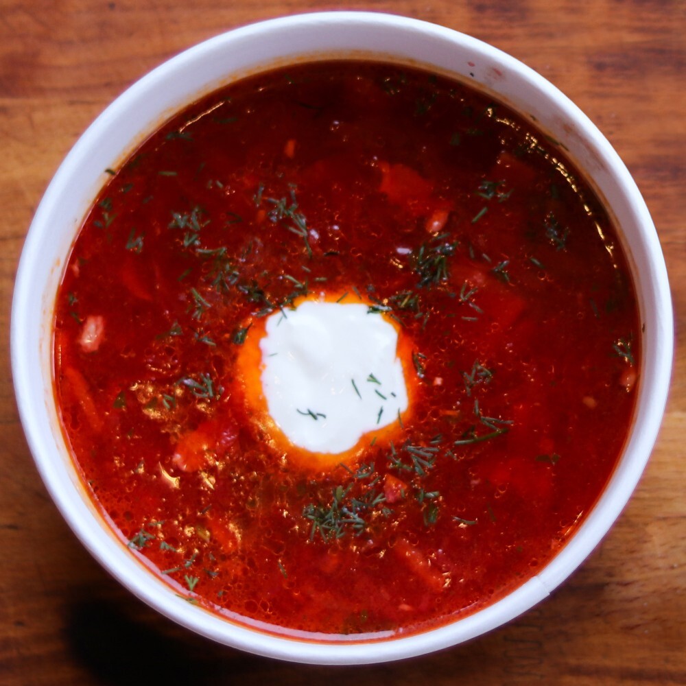 Густой, ароматный и насыщенный вкус с мягкой кислинкой, приготовленный из свежих натуральных продуктов. Идеальное сочетание сочной свеклы, мяса, капусты